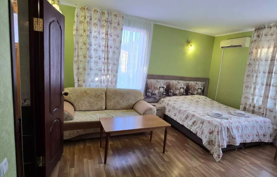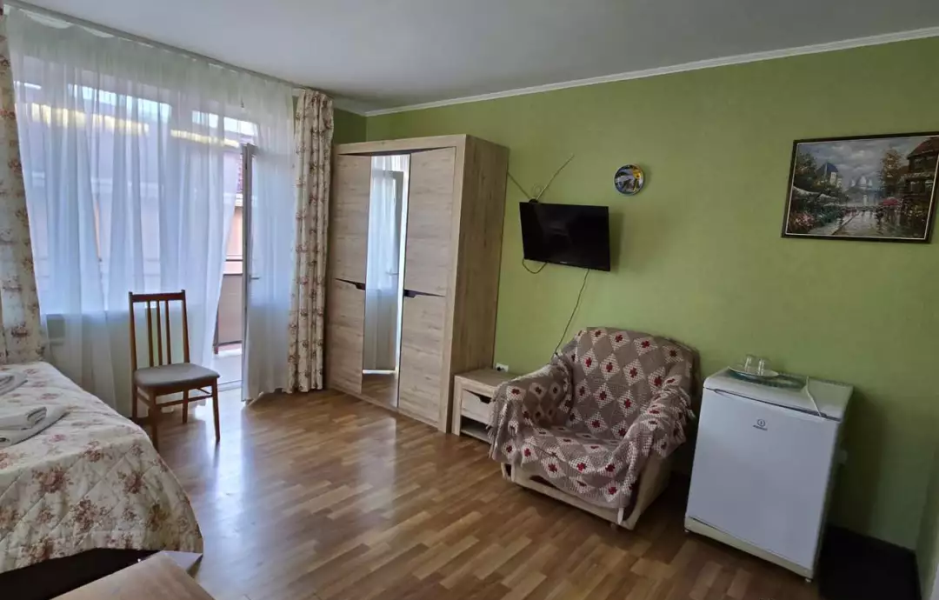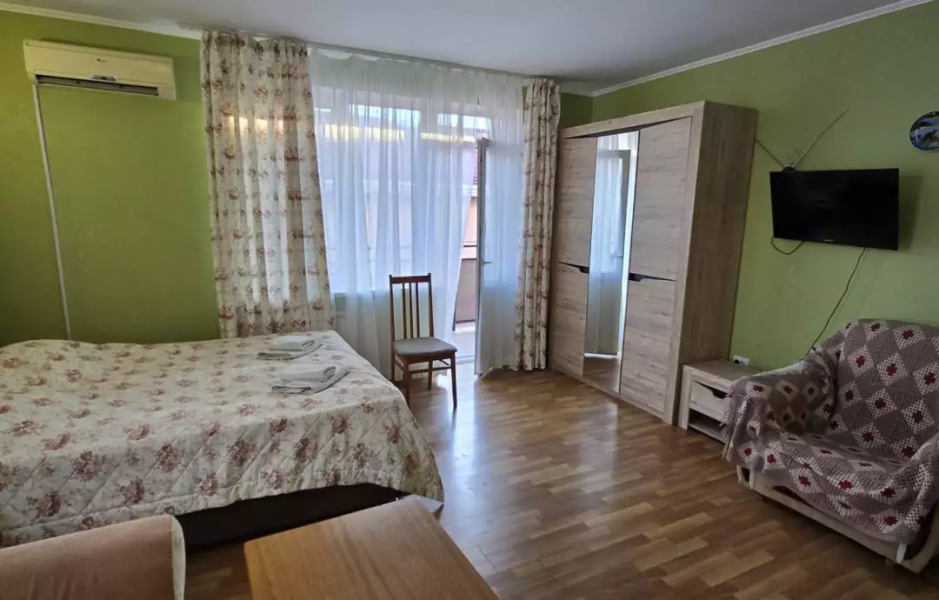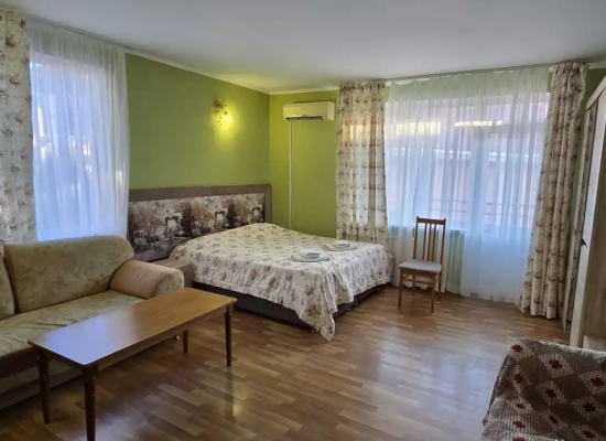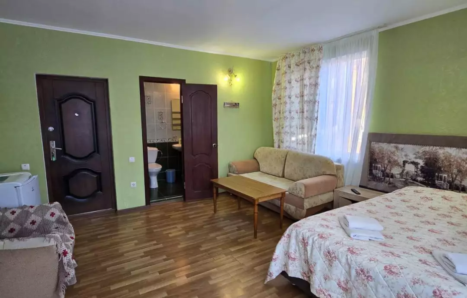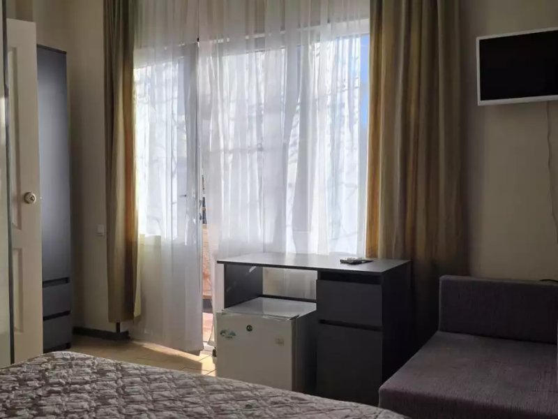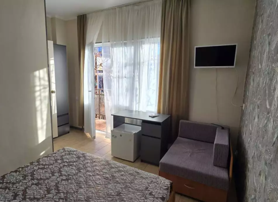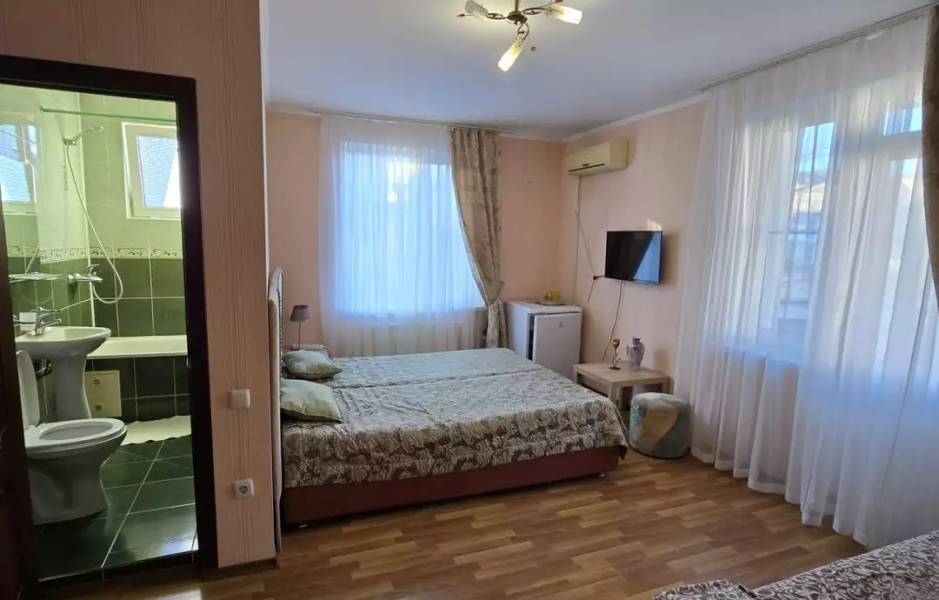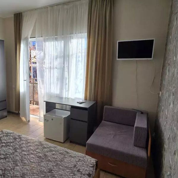 Номера оснащены своими удобствами, мягкая мебель, индивидуальная система кондиционирования, телевидение, Wi-Fi, горячая и холодная вода постоянно. Светлые и просторные номера с балконами, можно подобрать под ваши пожелания. К вашим услугам смена белья, на 5-ый день проживания. А так же трансфер с ж/д вокзала, для наших гостей- бесплатный!